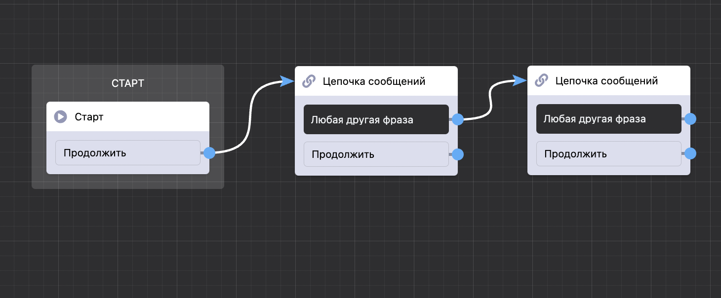 При создании нового сценария или бота, в нем по умолчанию первым блоком будет блок “**Старт**”. В нём не требуется ничего настраивать, это просто стартовая точка.&#x20;